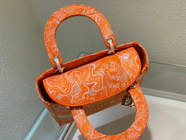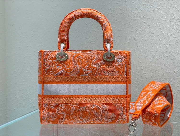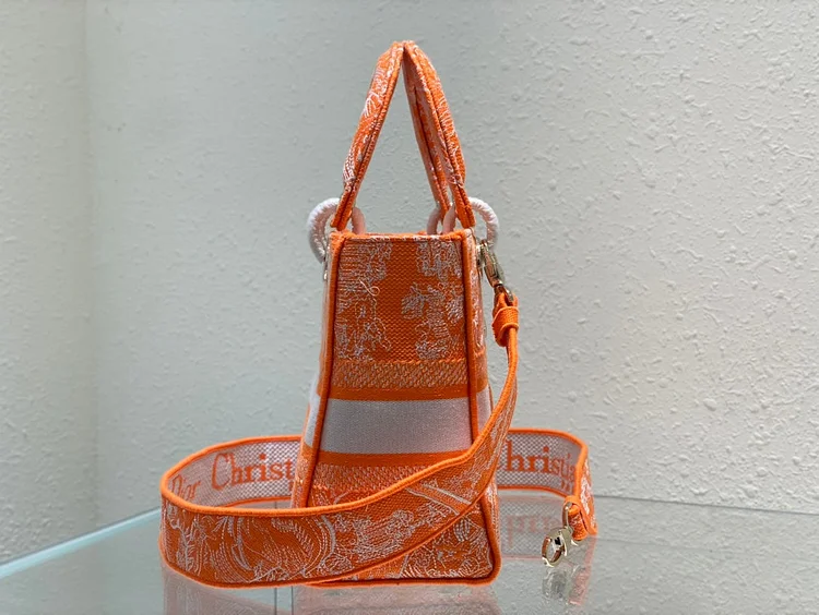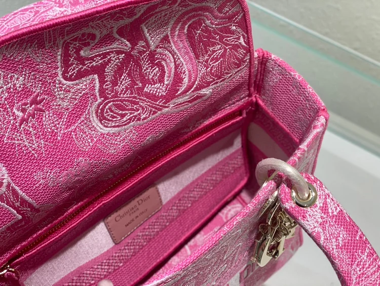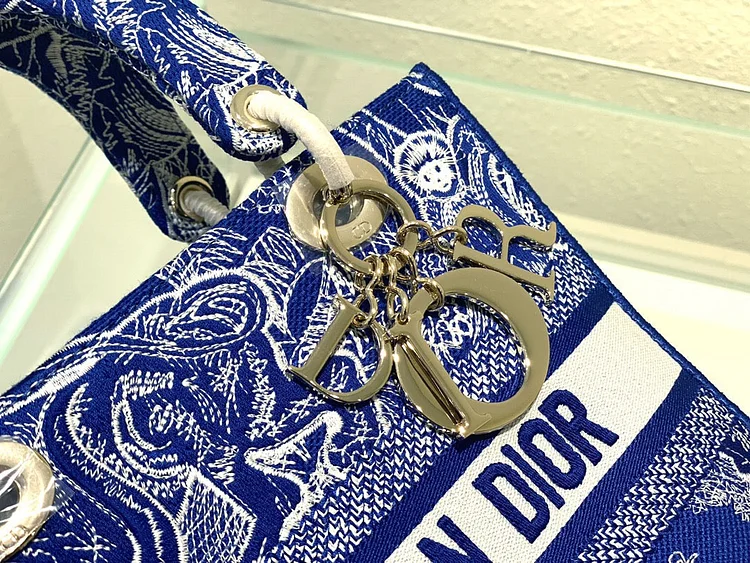 The Lady D-Lite bag combines classic elegance with House modernity. Part of the CDiviera ‘CD PARIS’ signature on the front. while ‘D.I.O.R.’ charms in pale gold-finish metal enhance and illuminate the silhouette. Equipped with a wide reversible and removable embroidered shoulder strap. the medium Lady D-Lite bag can be carried by hand or worn crossbody. and can be coordinated with other CDiviera creations.