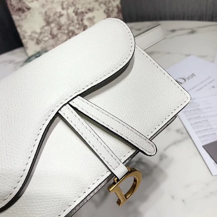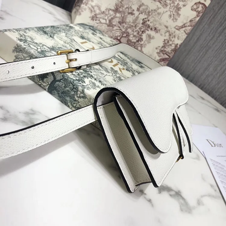 D White Calfskin Saddle Belt Bag