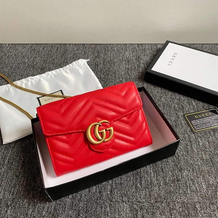 - Matelassé chevron leather with GG on the back