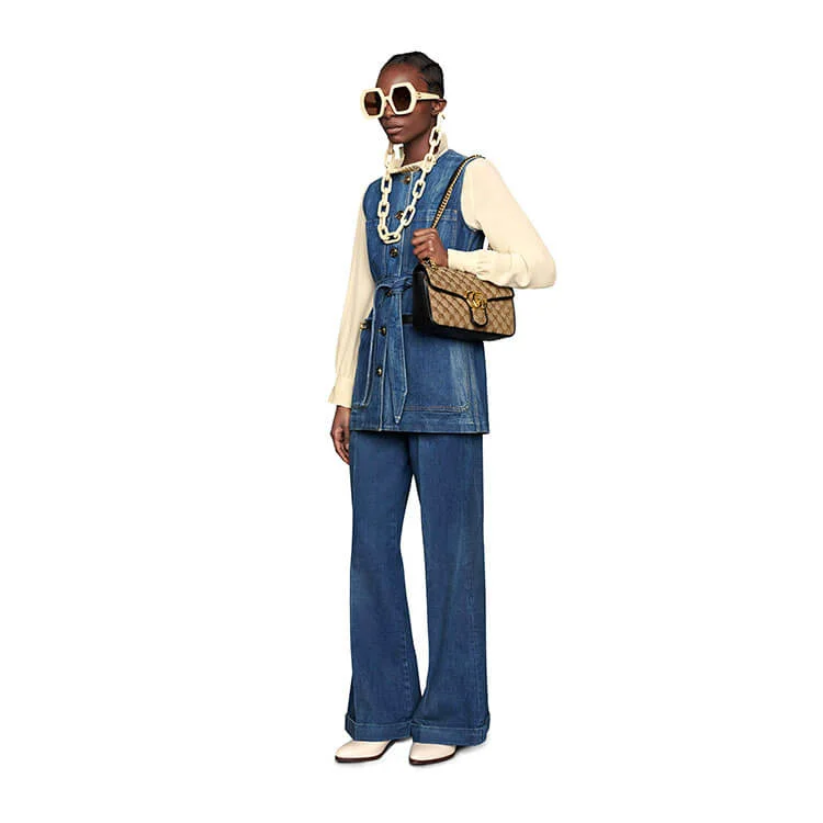 Sliding chain strap can be worn as a shoulder strap with 22drop. as a top handle with 12drop or as a cross body bag.