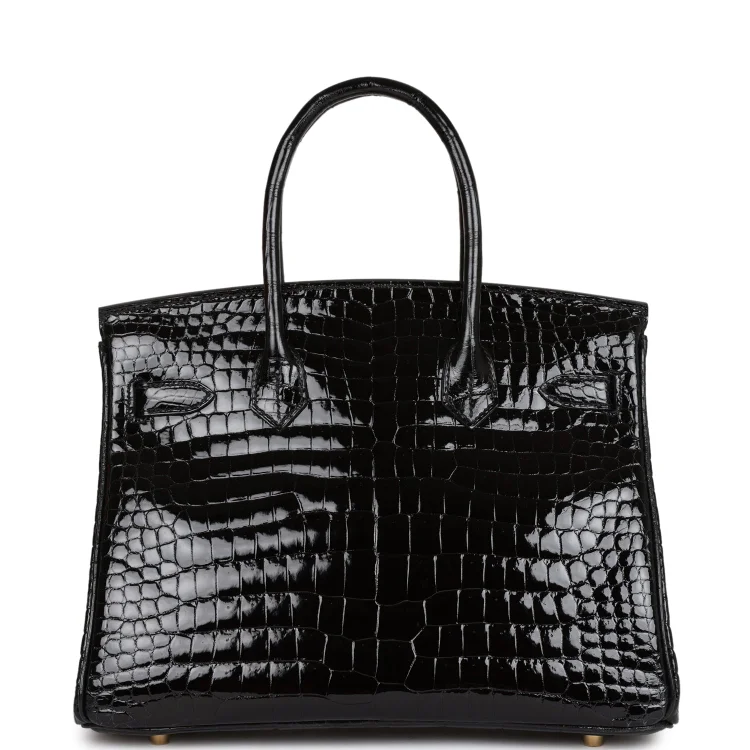 H Birkin 30 Black Shiny Niloticus Crocodile Gold Hardware