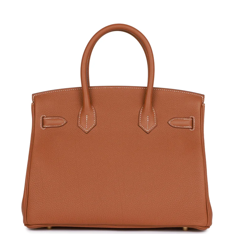 This Birkin is in gold togo leather with gold hardware and has white contrast stitching. front flap. two straps withcentertoggle closure. clochette with lock and two keys. and double rolled handles.