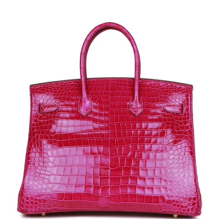 H Birkin 35 Rose Scheherazade Shiny Niloticus Crocodile Gold Hardware