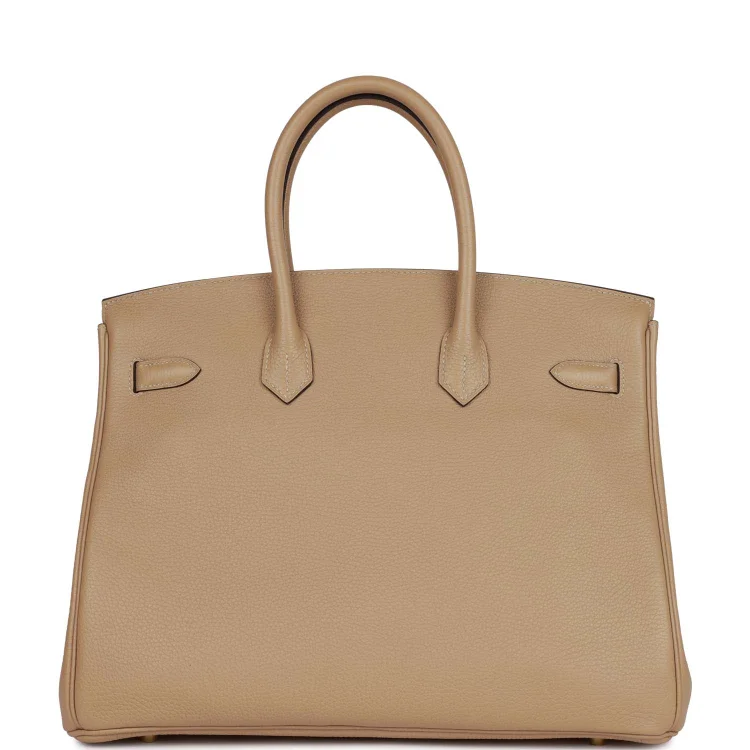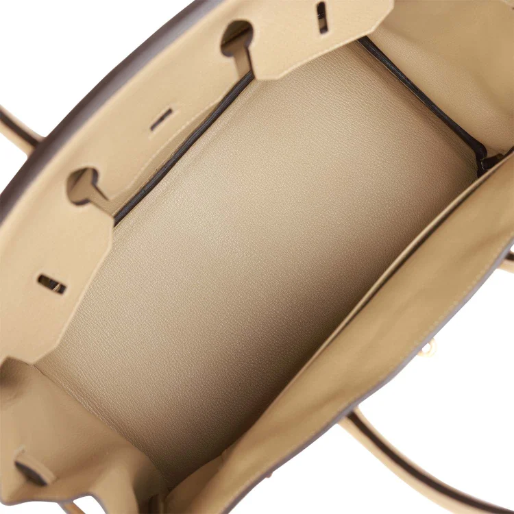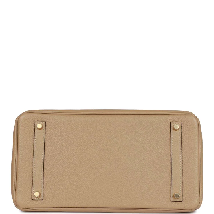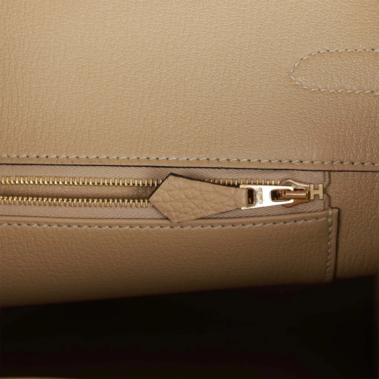 This Birkin is ofTrench clemence leather withgold hardware and features tonal stitching.front flap. two straps withcentertoggle closure. clochette with lock and two keys. and double rolled handles.