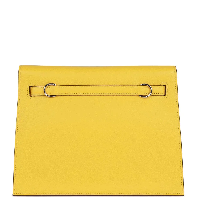 This Kelly Danse II is inLime evercolor leather withpalladium hardware and hascontrast stitching. two straps with front flap closure and an adjustable flatshoulder strap for multistyle wear.