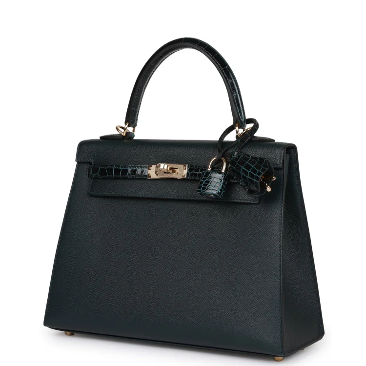 H Kelly Sellier 25 Vert Rousseau Madame and Shiny Niloticus Crocodile Touch Gold Hardware