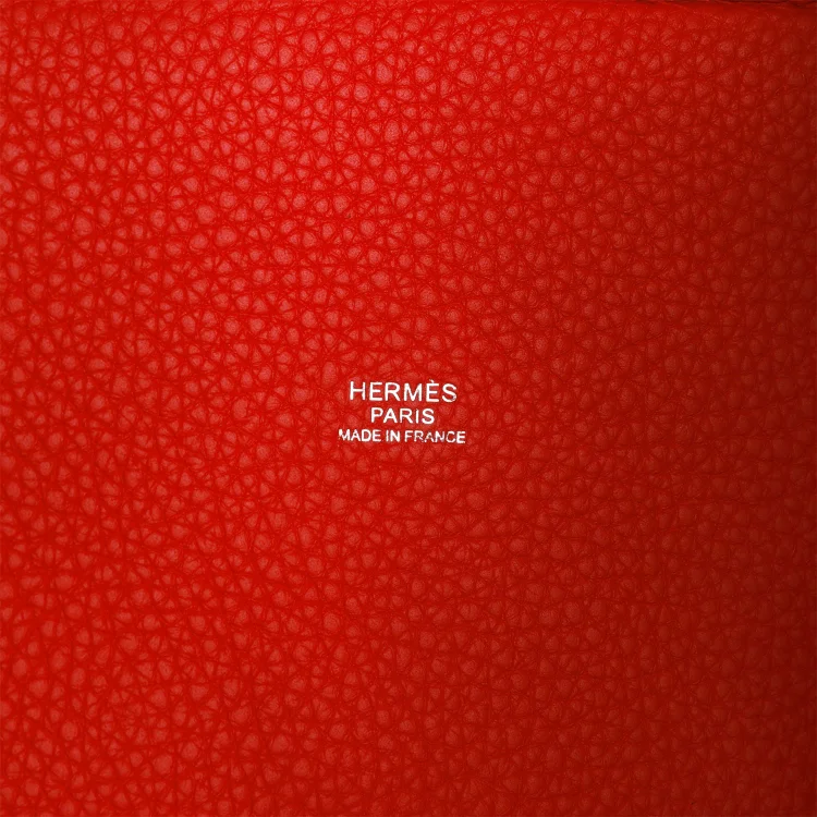 This Picotin Lock is inVermillion clemence leather with palladium hardware and has tonal stitching with two top handles.