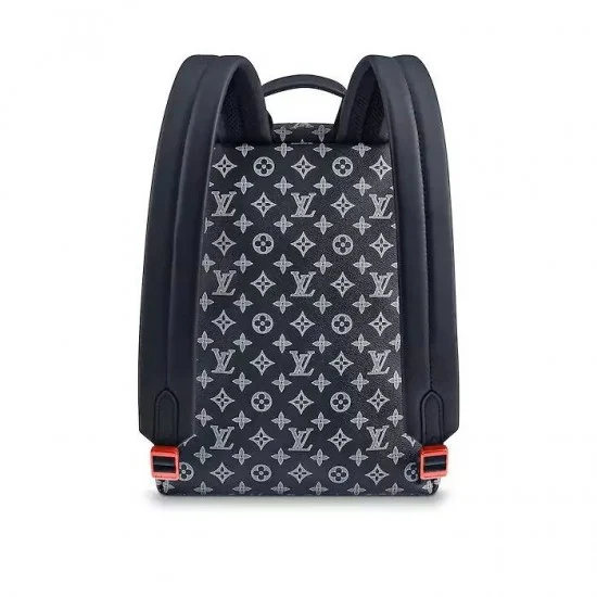 Kim Jones turned the signature on its head for this bold edition of the Apollo Backpack. Created for the Men’s 2018 Fall Pre-collection. it is crafted of Monogram Ink canvas. with rugged cowhide leather trim. The Coral Pink zipper echo the bag’s colorful. oversize logo.