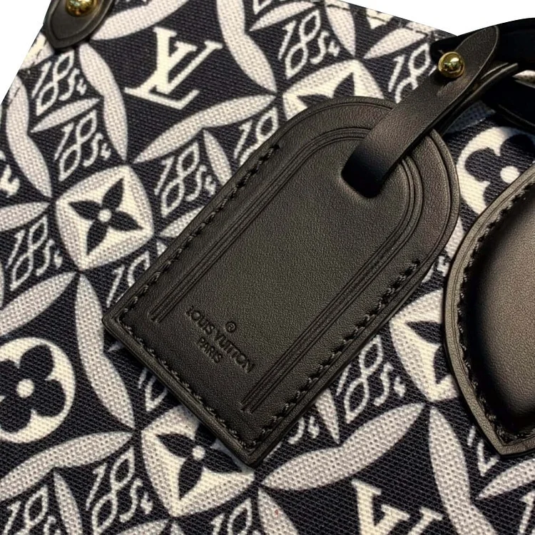Denim and Leather play stylishly together on this casual-chic Onthego GM tote bag. creating an interesting illusion of texture. Subtle motifs add refinement. while the leather trim brings a bold touch. A roomy. fashionable piece. perfect for everyday wear.
